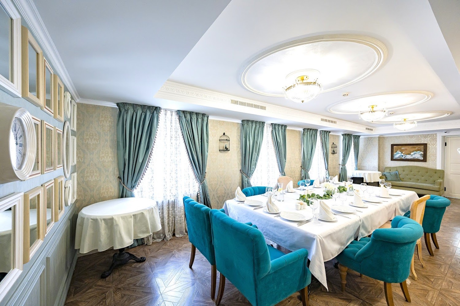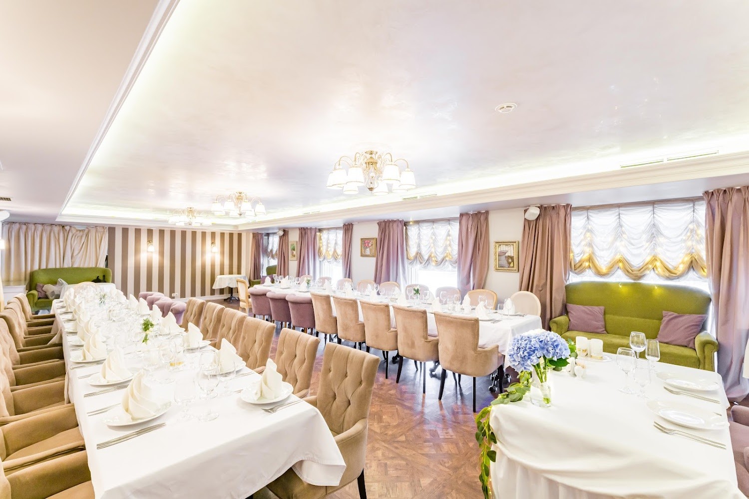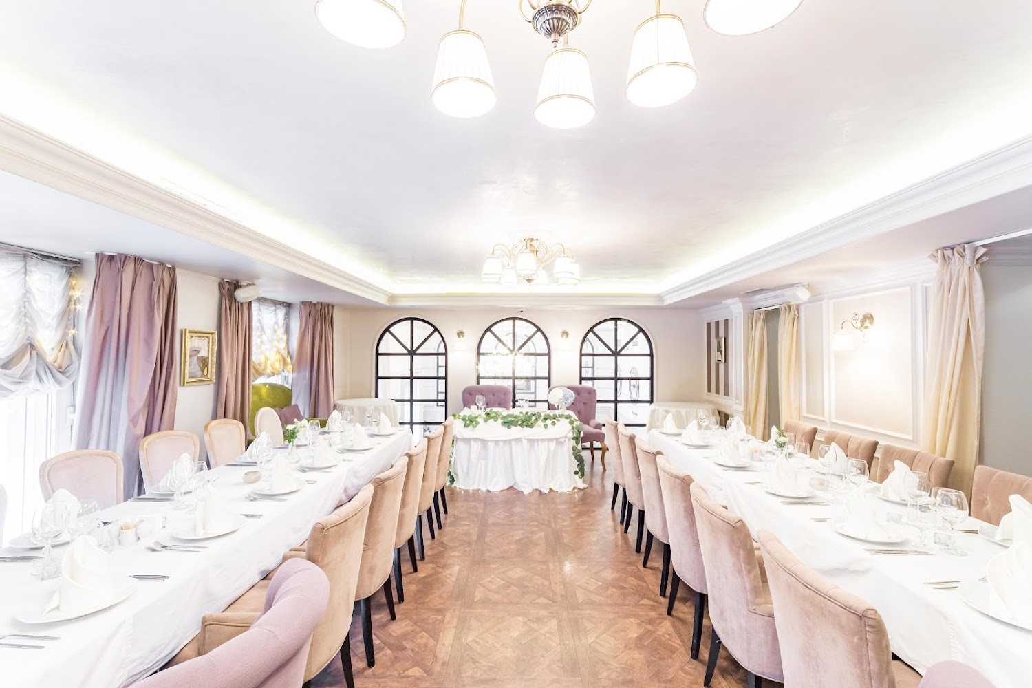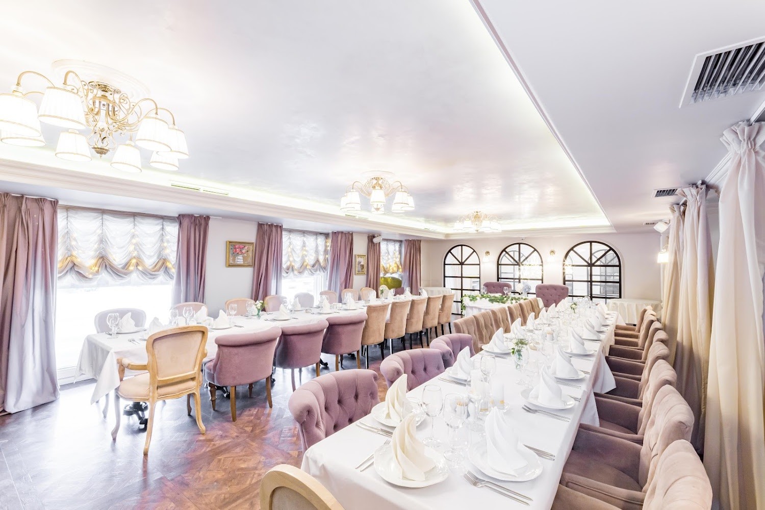 Гости обязательно оценят приятный интерьер, выполненный в пастельных тонах. В зале элегантная мебель, изящные люстры на потолках, зеркала и картины на стенах, а также другие интересные элементы декора.